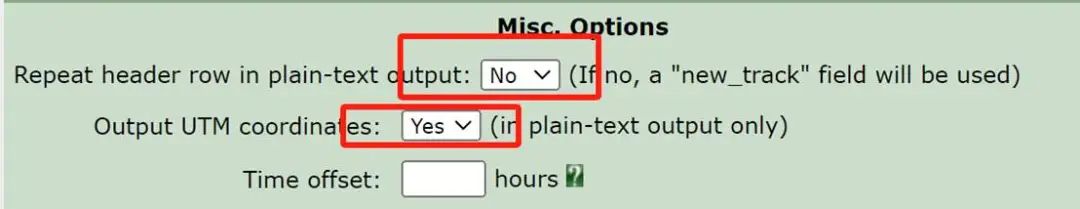 点开:高级选项,“在纯文本输出中重复标题行”,选择“否”。“输出UTM坐标”选择“是”。